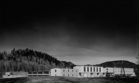 In 1961, St. Mary’s Residential School was rebuilt on a site overlooking the Fraser River in S’ólh Téméxw, the unceded and traditional territory of the Stó:lō. Its sparse, rectangular volumes, arranged at irregular angles as if scattered on the landscape, contrasted with the dilapidated structures of the previous campus down the hill.
